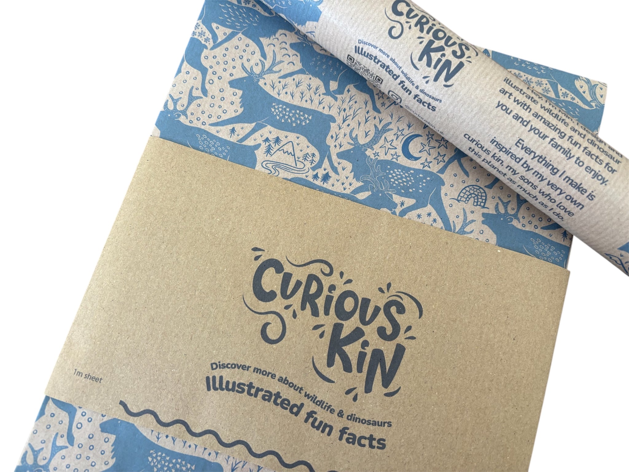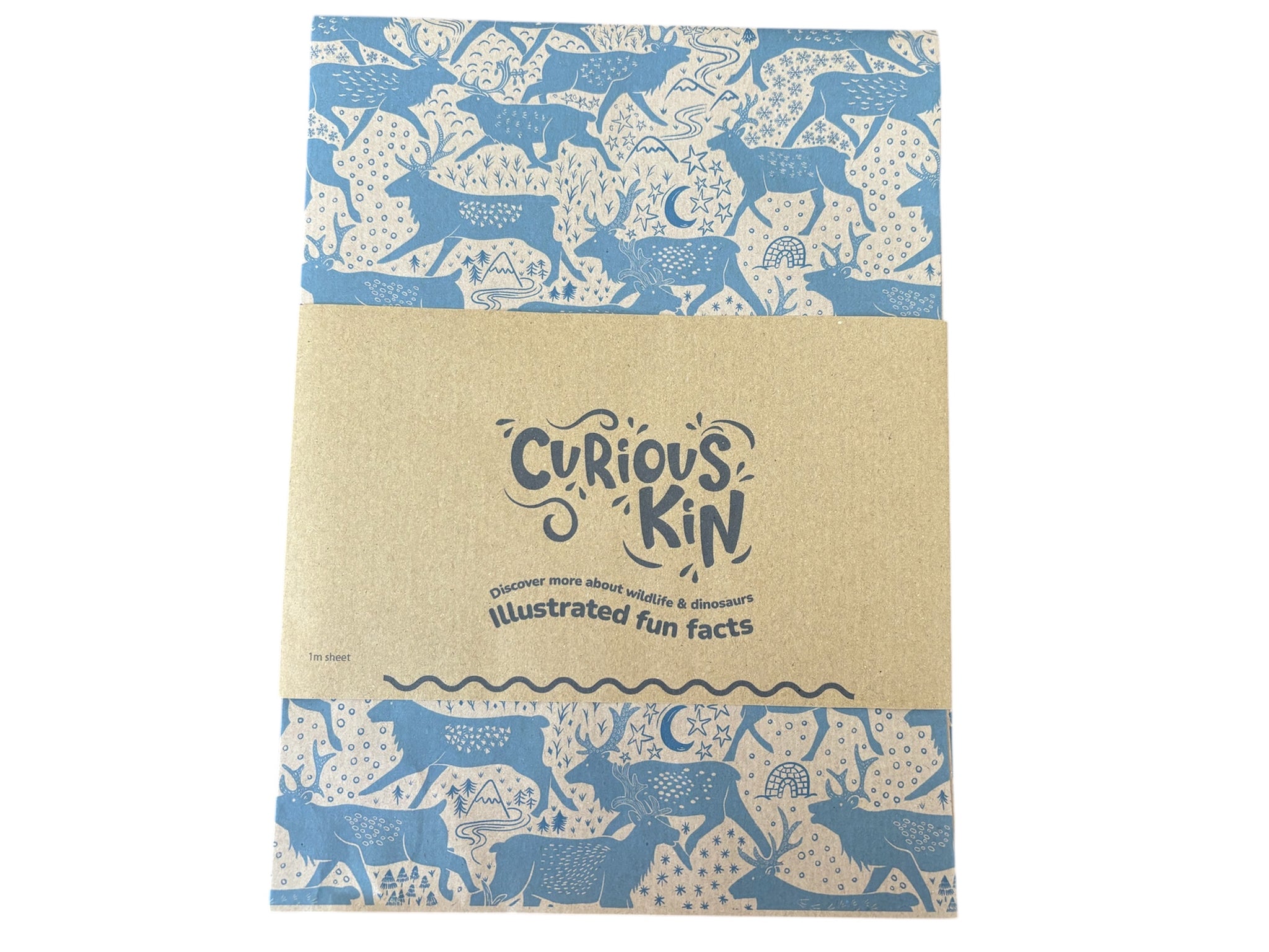 A colourful and illustrative Reindeer design hand-drawn by the very talented UK based artist Curious Kin, printed onto our recycled kraft paper.